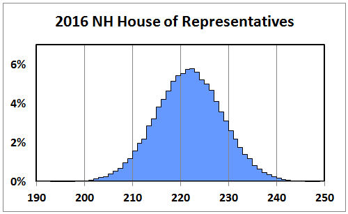 An early look at our 2016 forecast model for the New Hampshire House projects Democrats will regain control of the 400-seat chamber with a comfortable majority. If the election were held today, our model predicts Democrats would win 221 seats to 179 for Republicans.