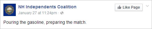 The NH Independents Coalition Facebook page describes the current status of the initiative: “Pouring the gasoline, preparing the match.”