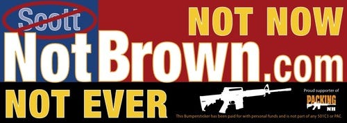 “Scott Brown is anti-gun!!!” declared state Rep. JR Hoell (R-Dunbarton). Jerry DeLemus, who later made national headlines when he commanded the armed militia that backed Nevada rancher Cliven Bundy, blasted Brown, calling him a “2nd Amendment trampler.” It’s “shameful” and “outrageous,” said the Rochester Tea Party activist.