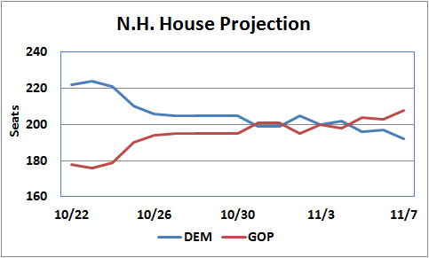 Based on those results, the UNH survey team projected Democrats would win a majority of the seats in the House, taking 207 seats to 193 seats for Republicans.
