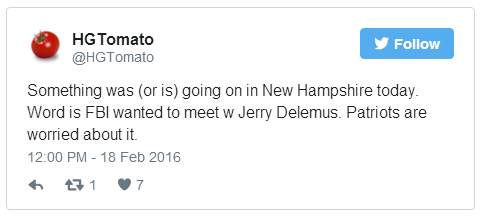In a Facebook message, DeLemus related the details of a subsequent phone call he had with the FBI. “I told the FBI agent if it was his intention to arrest me I would go peacefully and I was completely unarmed,” he wrote. “They did not want the meeting recorded or my wife and NH State Representative there. I told him people are nervous after what has happened and you should understand why.”