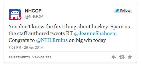 Why would the New Hampshire Republican Party assume Shaheen doesn’t know the first thing about hockey?