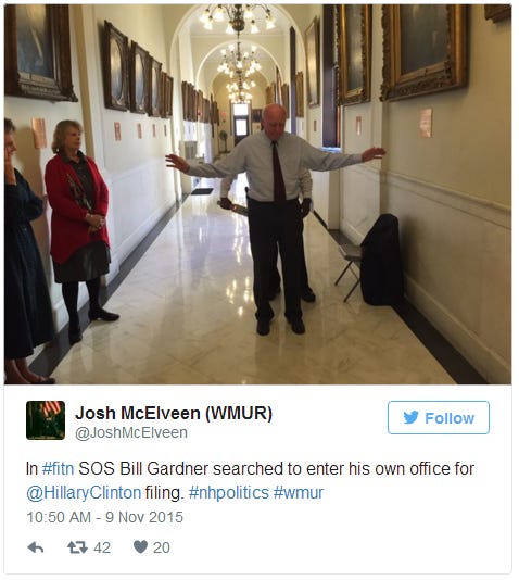 It was a typical reaction from Republican lawmakers who flocked to social media to complain after WMUR Political Director Josh McElveen tweeted a photo of Gardner with the Secret Service officials. They condemned Clinton, of course.