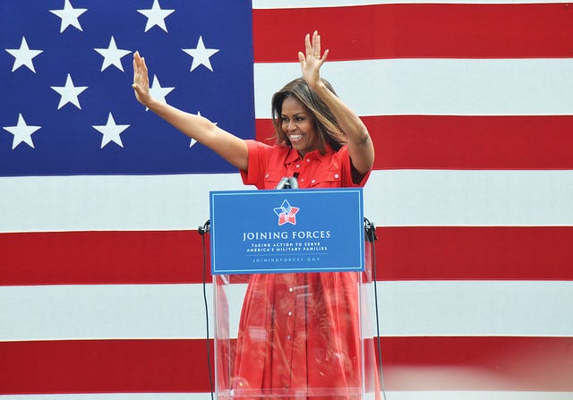 The image, which has been bouncing around the internet since April, was captured during the 2015 White House Correspondents’ Association dinner. It’s not Michelle Obama.