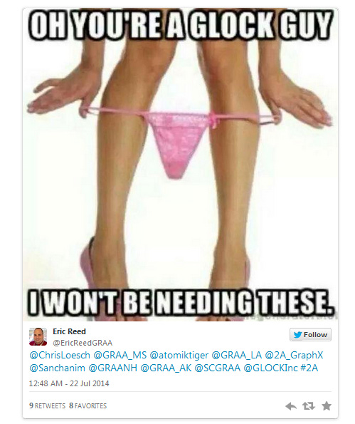 That – and the meme Reed recently tweeted showing a woman dropping her panties for a “Glock guy” – typifies the group’s sensibilities.