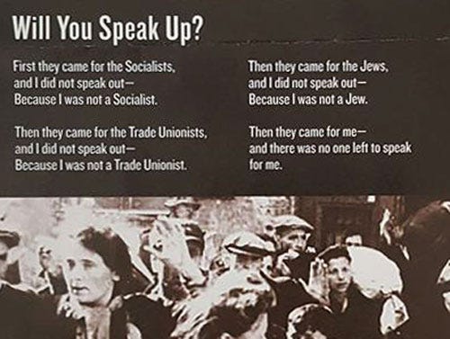 His wife, state Rep. Susan DeLemus (R-Rochester), shared a message from the Rochester tea party leader that was scribbled on the back of a magazine cover. The magazine, from the Billy Graham Evangelistic Association, depicted Polish Jews being rounded up by German troops and included the Martin Niemöller quote, “First they came for the Socialists…”