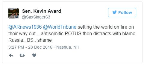 In a series of blistering tweets, state Sen. Kevin Avard (R-Nashua) responded by accusing the president of “setting the world on fire” in the waning days of his presidency and dismissed the president’s actions retaliating against Russian interference in the U.S. presidential election as an attempt to distract the public from the developments. ”BS.. shame,” he wrote.