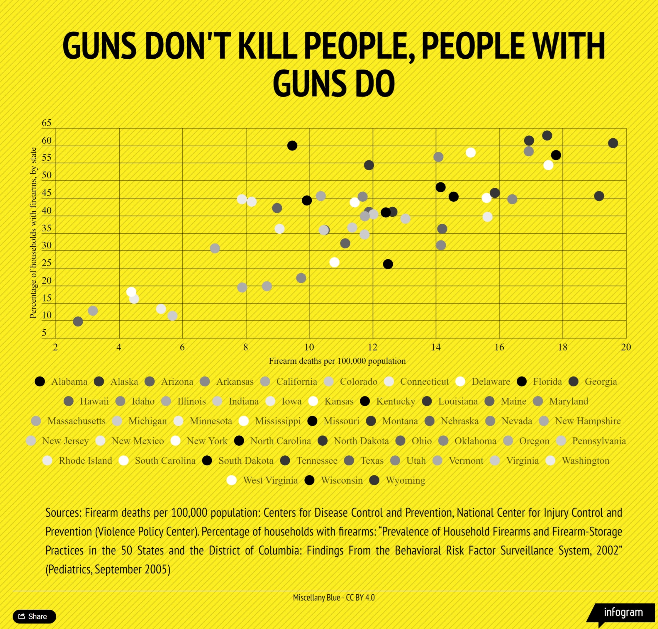 Despite all of the conflicting testimony and obfuscation, one fact is clear and indisputable. States that have more guns – as measured by the percentage of households with firearms – have more gun deaths.