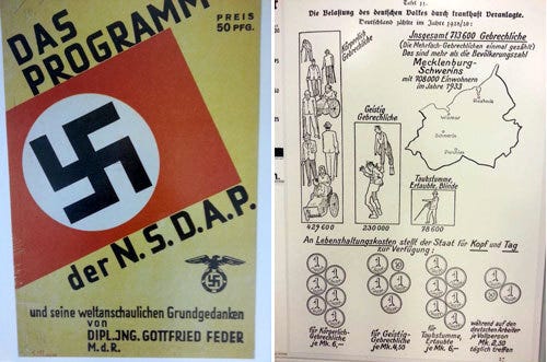 “Pay particular attention to the propaganda poster which documents how much each class of useless eaters (elderly, etc.) cost German society,” Becker wrote, “and then compare it to the death panels that the Independent Payment Advisory Boards WILL implement through ObamaCARE.”