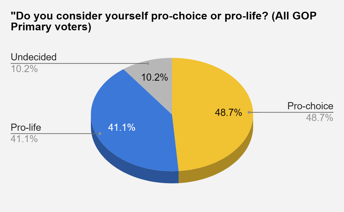 A recent public opinion survey indicates the platform is at odds with the majority of likely voters in next years’ Republican presidential primary. In a poll conducted by the Suffolk University Political Research Center, 49% of those likely voters said they are pro-choice. 41% identified themselves as pro-life. Registered Republicans, who made up 59% of the sample (undeclared voters can also vote in the Republican primary), were evenly split. 44% consider themselves pro-choice; 46% say they are pro-life.