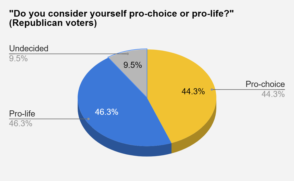 Regardless of their position, very few of these voters consider abortion policy to be an important issue. When asked to identify “the most important issue facing the country right now,” less than 2% of the sample chose abortion policy. Of the 11 issues listed in the survey, the only issue identified as the most important by fewer people was same-sex marriage – the other high profile social issue that divides the party.
