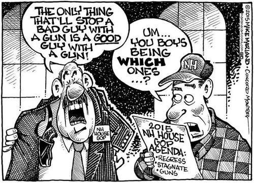 “I am working on a bill for next year that would allow ‘trained’ 'willing’ teachers to carry in our NH public schools,” the Goffstown Republican told his Facebook friends, after being lampooned by cartoonist Mike Marland in the Concord Monitor.