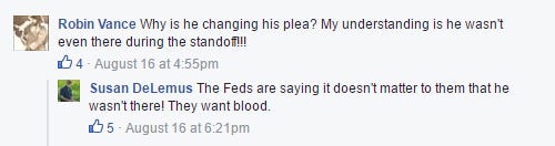 “The Feds are saying it doesn’t matter to them that he wasn’t there!” his wife explained. “They want blood.”