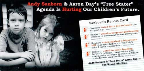 The case for Day’s involvement with the Liberal Lee Nyquist website is circumstantial. But even before the site appeared, WMUR’s James Pindell was reporting that Sanborn’s re-election bid could be jeopardized as Bedford Republicans jump ship over Sanborn’s “refusal to distance himself from new libertarian elements in town.”