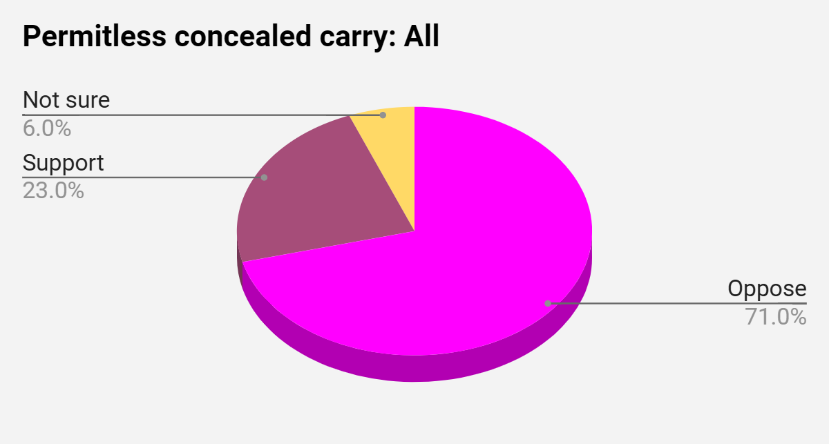 A new survey indicates New Hampshire voters overwhelmingly oppose a proposed change to the state’s gun laws that would allow a person to carry a loaded, concealed firearm without a license.