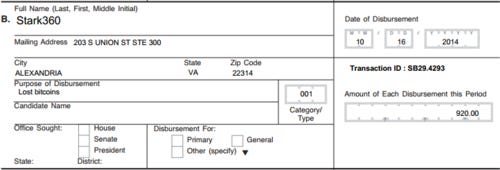 And then there’s this eye-catching line item: a $920 disbursement for “Lost bitcoins.”