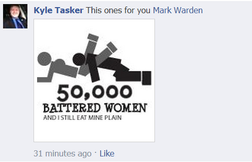 – The caption for an image posted on Facebook by state Rep. Kyle Tasker (R-Nottingham) in support of Rep. Mark Warden, who had been criticized for suggesting “a lot of people like being in abusive relationships.”