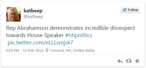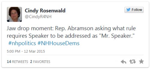 The exchange was a “jaw drop moment,” tweeted Rep. Cindy Rosenwald (D-Nashua). Abramson demonstrated “incredible disrespect” to Jasper, agreed Rep. Katherine Rogers (D-Concord).