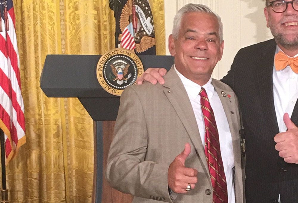In a White House pool report, New York Times reporter Maggie Haberman noted Baldasaro “was sitting in one of the first two rows in the audience. The crowd stood as the president departed, and Baldasaro yelled out a thank-you to the president for keeping a promise.”