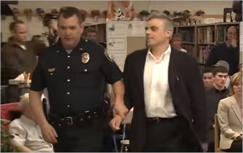 Wonkette reports on the controversy that resulted in a parent’s arrest during a Gilford school board meeting: